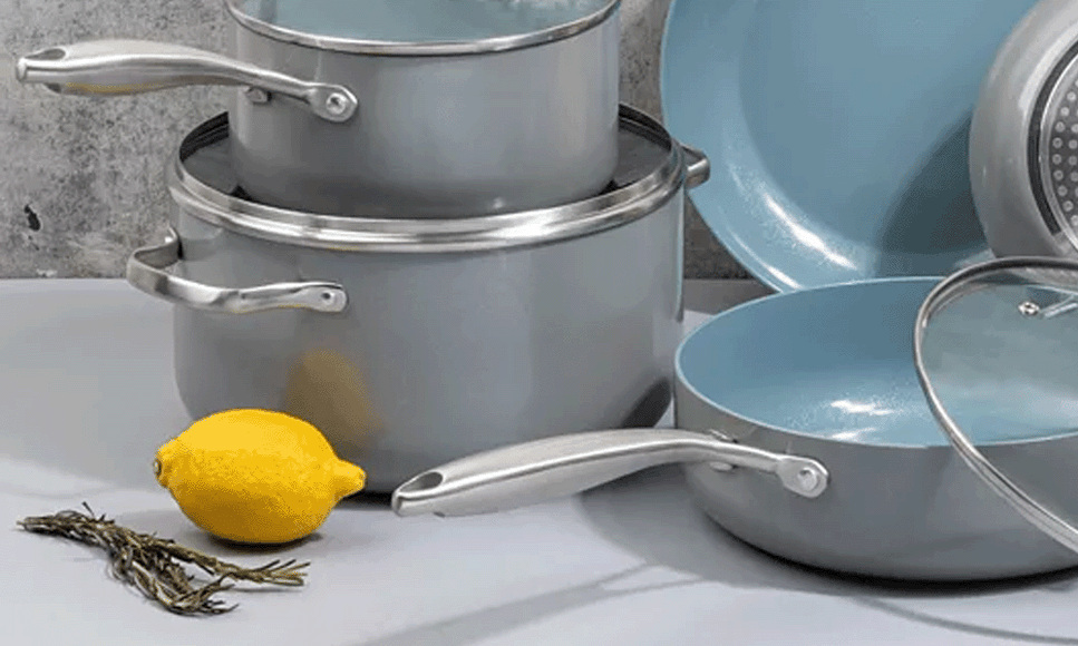 - Aqua-Tech™ multi-layer ceramic coating made without PFOA and PTFE for healthy cooking